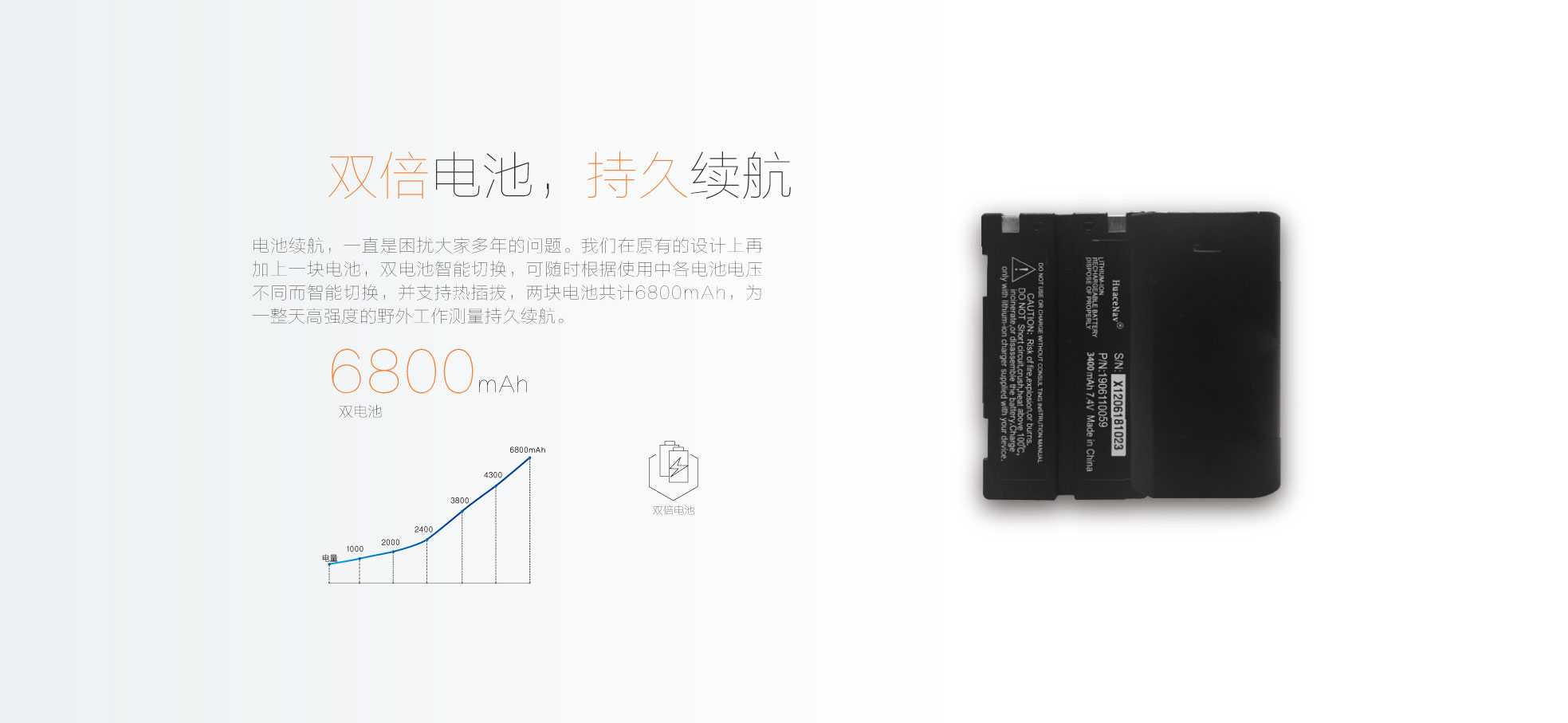 8000毫安時(shí)超大容量電池,完全保障用戶兩天的高負(fù)荷使用,防水防塵達(dá)到工業(yè)IP68等級(jí),為外業(yè)工作提供更多便捷。